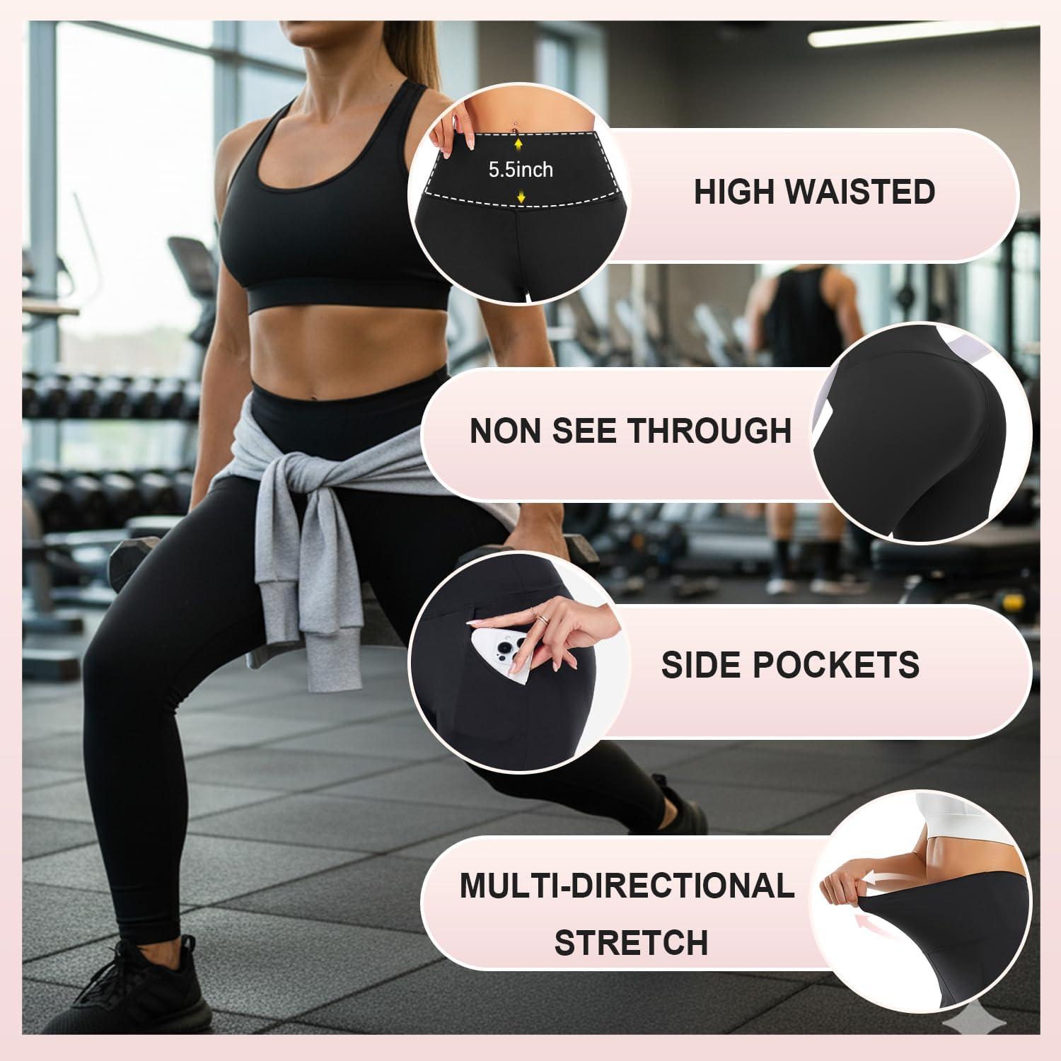 3 Pack High Waisted Leggings for Women- Full Length Capri Black Buttery Soft Tummy Control Yoga Pants for Workout Athletic(1ac-1 Pack Black With Pockets)