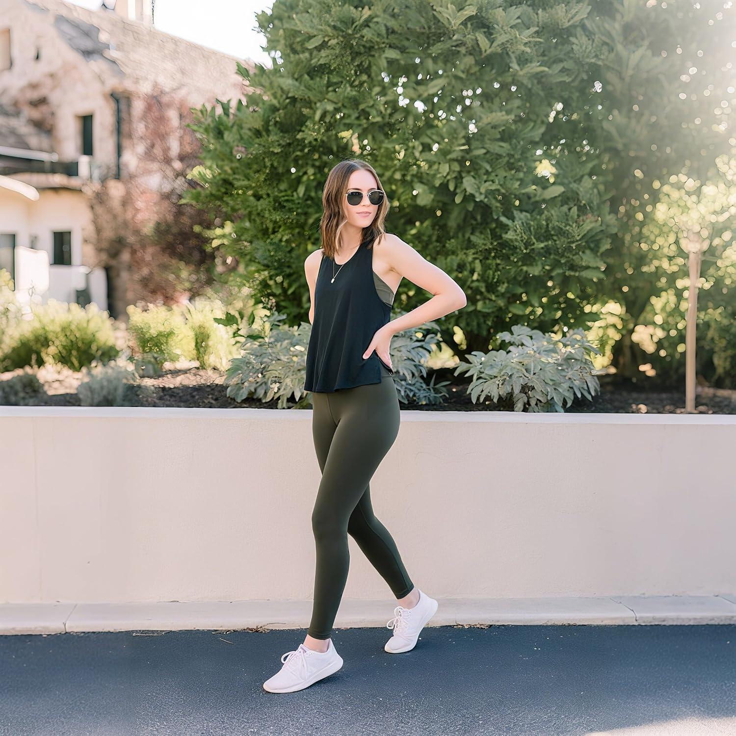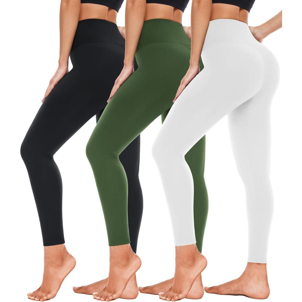 3 Pack High Waisted Leggings for Women- Full Length Capri Black Buttery Soft Tummy Control Yoga Pants for Workout Athletic(2-3 Pack Black laurel Green white)
