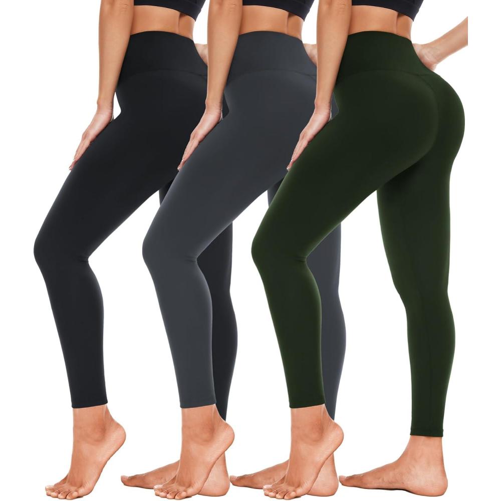 3 Pack High Waisted Leggings for Women- Full Length Capri Black Buttery Soft Tummy Control Yoga Pants for Workout Athletic(3 Pack Black dark Gray olive)
