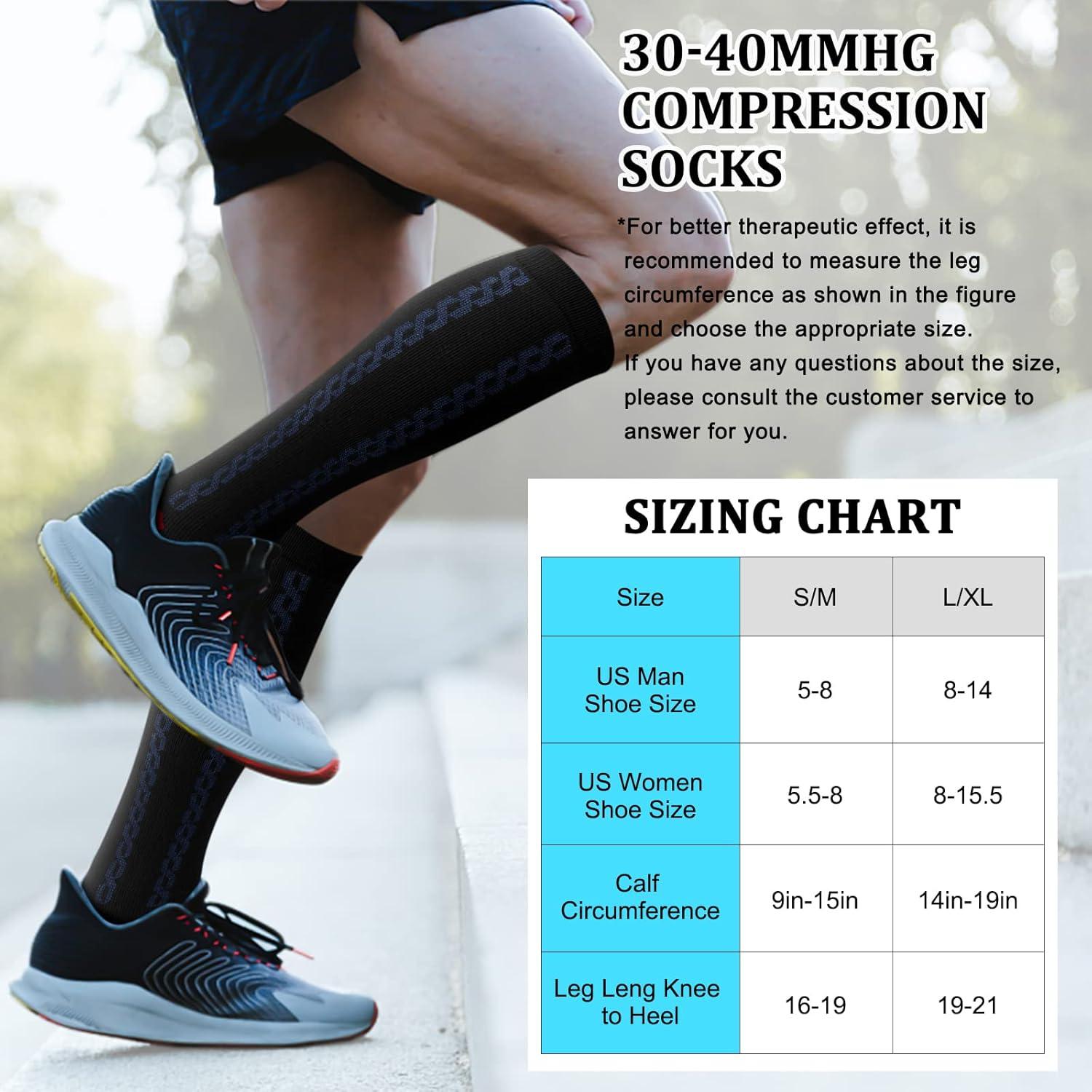 30-40mmHg Medical Graduated Compression Socks for Women&Men Circulation-Compression Stockings Knee High Socks for Support,Hiking,Running(2 Pack Strip Black Navy,L-XL)