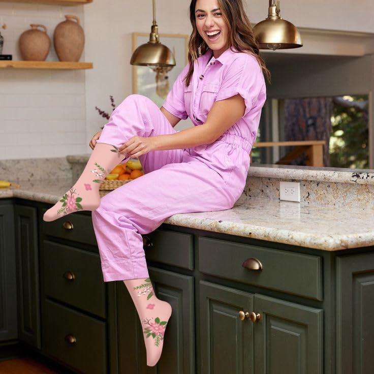 30-40mmHg Medical Graduated Compression Socks for Women&Men Circulation-Compression Stockings-Knee High Socks for Support,Hiking,Running(7-2 Pack Flowers Navy Pink)