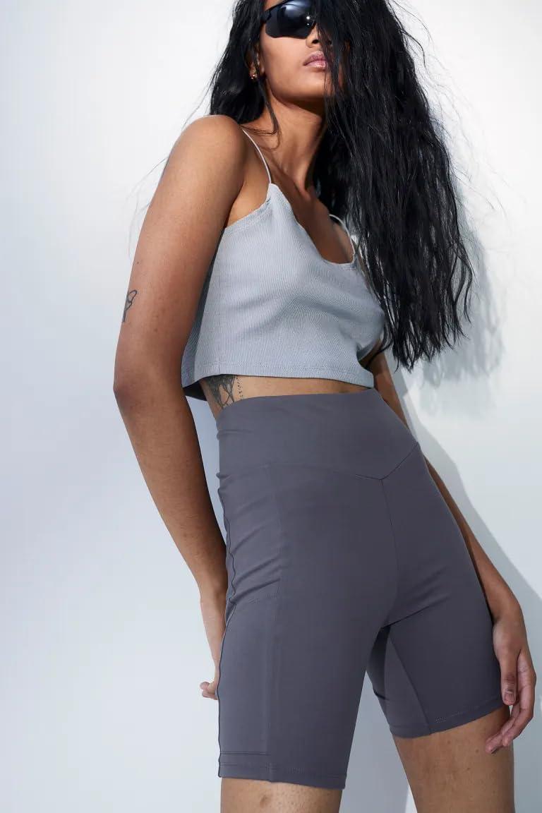 Aoliks Biker Shorts Women with Pockets – 8″ High Waisted Tummy Control Running Workout Spandex Gym Volleyball Yoga Shorts(1 Grey)