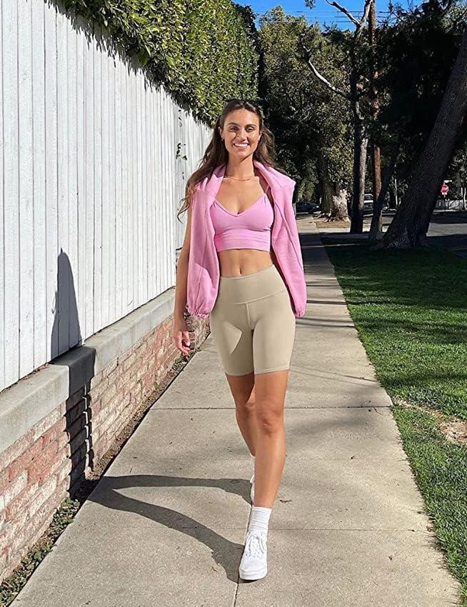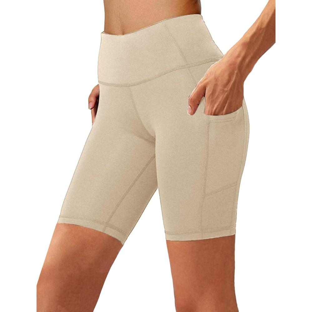 Aoliks Biker Shorts Women with Pockets – 8″ High Waisted Tummy Control Running Workout Spandex Gym Volleyball Yoga Shorts(1 Light Apricot)