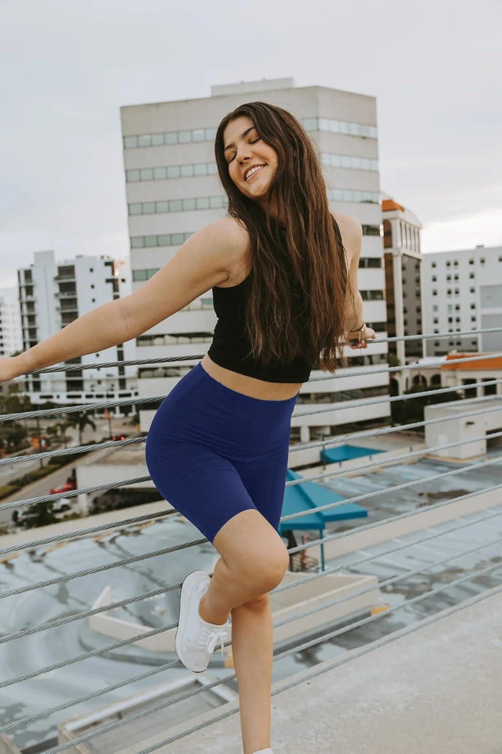 Aoliks Biker Shorts Women with Pockets – 8″ High Waisted Tummy Control Running Workout Spandex Gym Volleyball Yoga Shorts(1 Navy Blue)