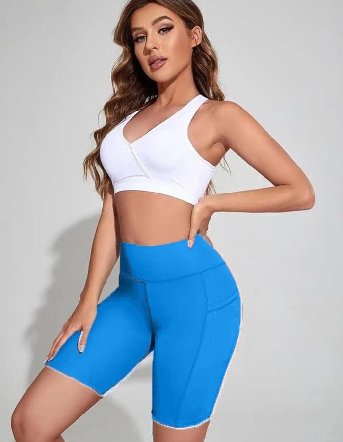 Aoliks Biker Shorts Women with Pockets – 8″ High Waisted Tummy Control Running Workout Spandex Gym Volleyball Yoga Shorts(1 Poolside)