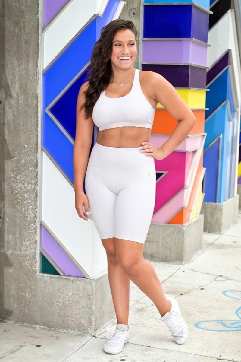 Aoliks Biker Shorts Women with Pockets – 8″ High Waisted Tummy Control Running Workout Spandex Gym Volleyball Yoga Shorts(1 White)