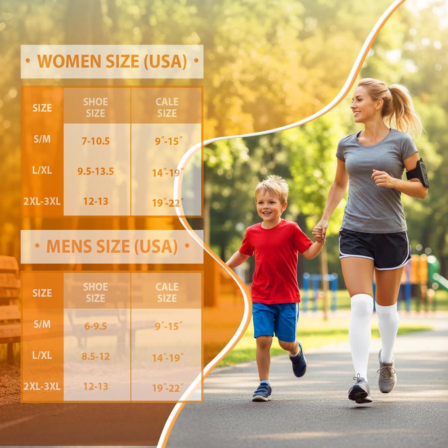 Graduated Compression Socks for Women&Men 20-30mmhg Knee High Socks Travel Hiking Running Stocking(02-5 Pairs White)