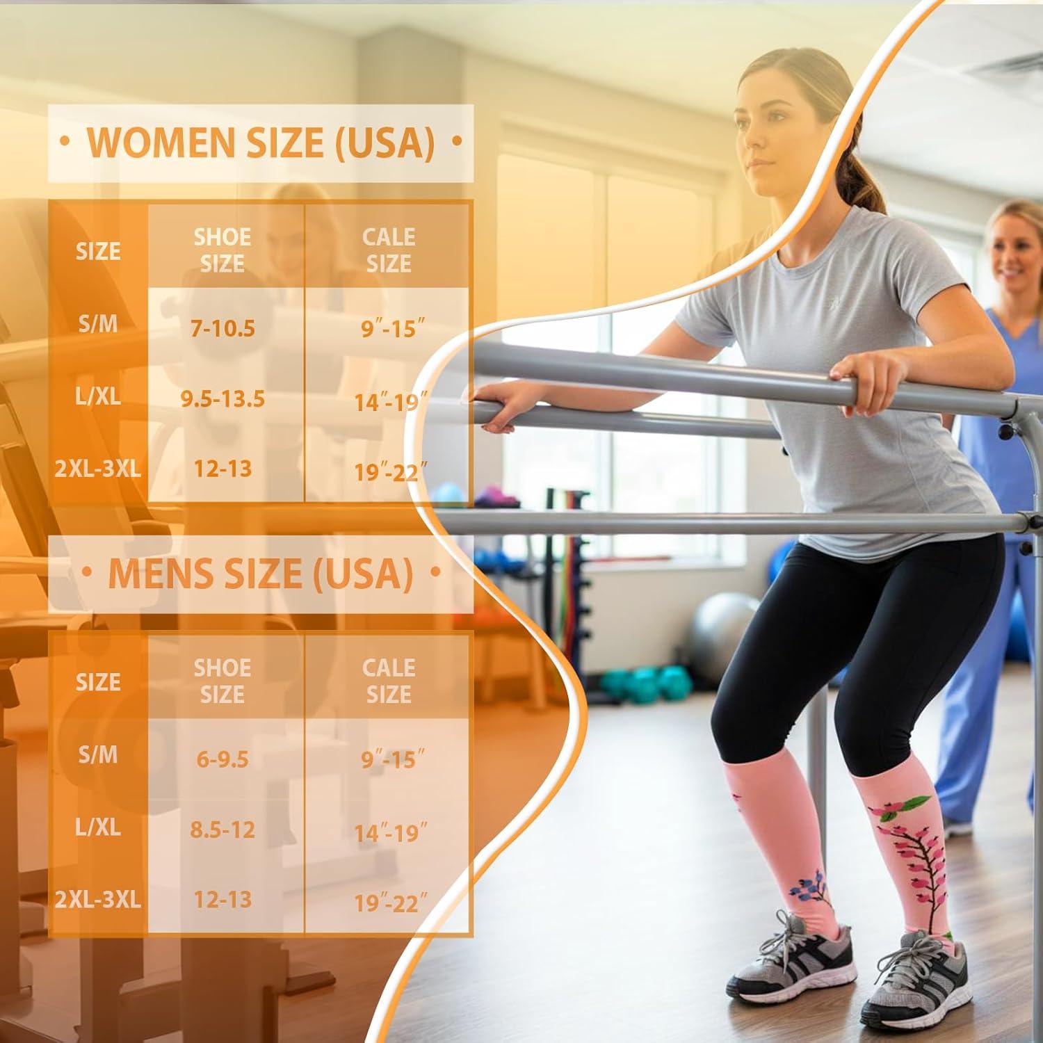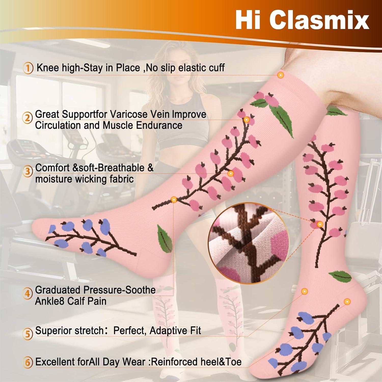 Graduated Compression Socks for Women&Men 20-30mmhg Knee High Socks Travel Hiking Running Stocking(08-6 Pairs Flower Series 02)