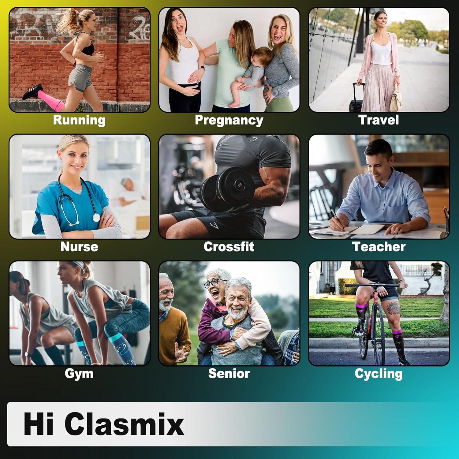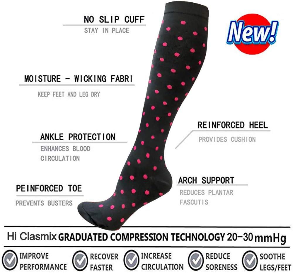 Graduated Compression Socks for Women&Men 20-30mmhg Knee High Socks Travel Hiking Running Stocking(09-6 Pairs Pink Series)