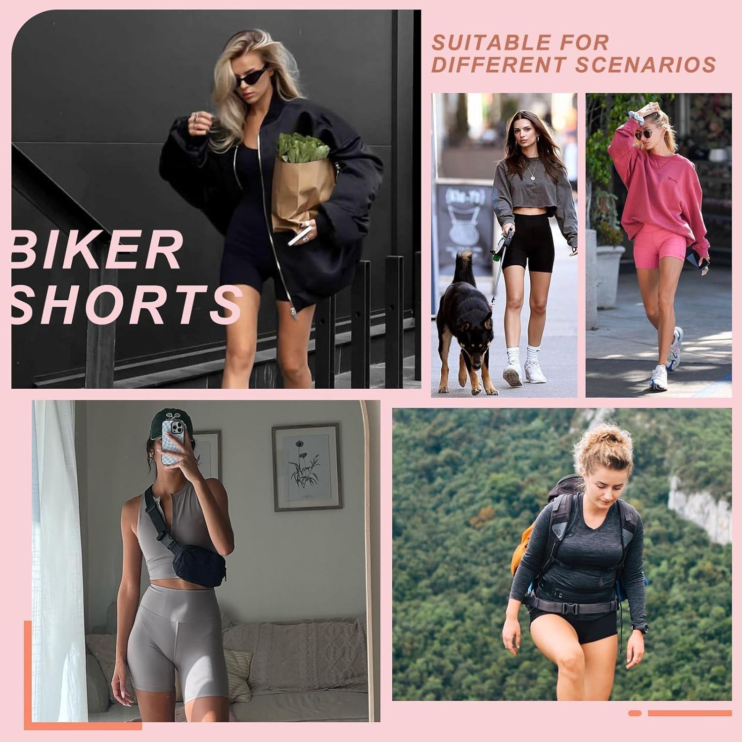 Hi Clasmix 2 Pack Bker Shorts for Women-5″ Tummy Control Fitness Athletic Workout Running Yoga Gym Shorts(Black/Light Blue)