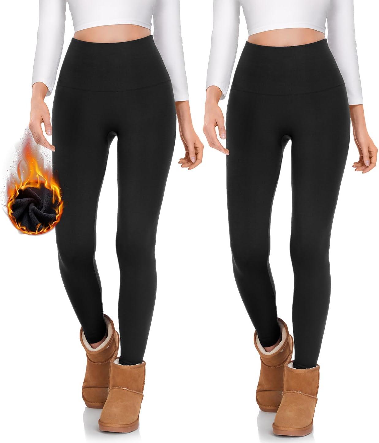 Hi Clasmix 2 Pack Fleece Lined Leggings Women-High Waisted Tummy Control Seamless Winter Thermal Warm Workout Yoga Pants(2 Pack Black,S/M), Small-Medium