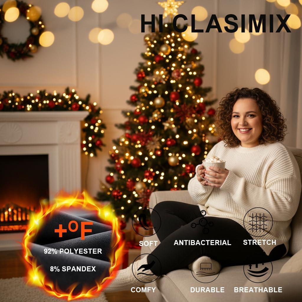 Hi Clasmix 2 Pack Plus Size Leggings for Women-High Waisted Tummy Control 1X-4X Soft Casual Yoga Pants for Curvy Women(01bc-2 Pack Fleece Black)