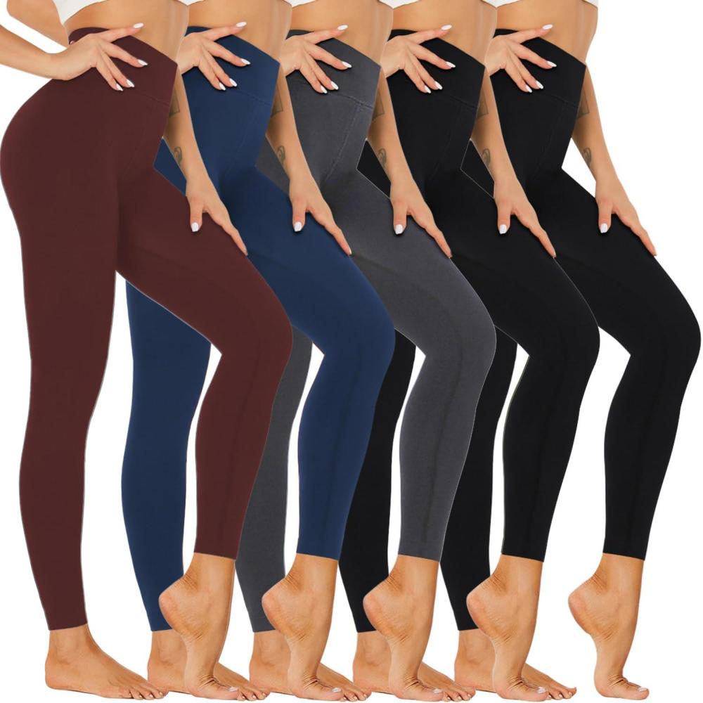Hi Clasmix 5 Pack Leggings for Women-High Waisted Tummy Control Soft Casual Workout Black Yoga Pants with Pockets(1-5 Pack Multicolor05)