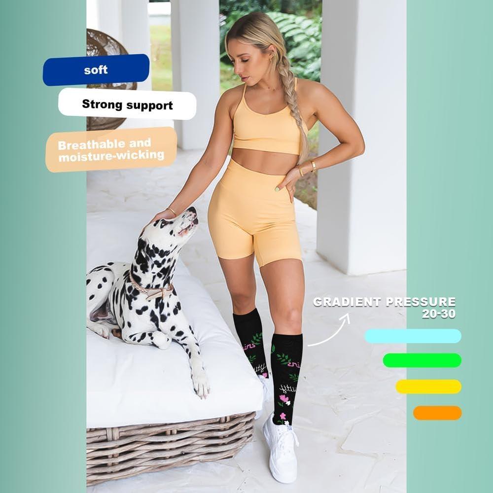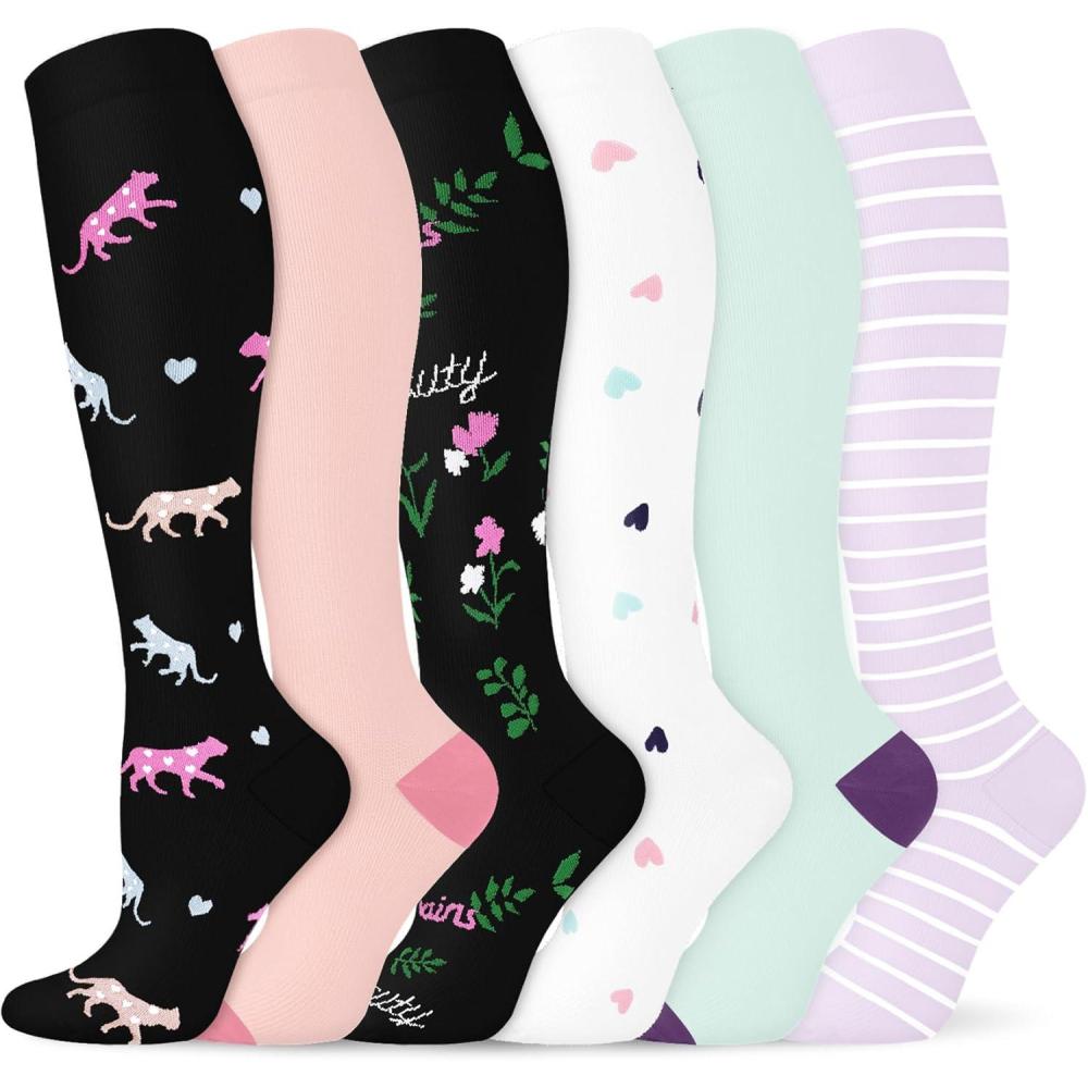 Hi Clasmix 6 Pairs Compression Socks for Women&Men 20-30mmhg Best for Circulation,Pregnancy,Media,Nurse,Running,Travel(Multi14,Small-Medium)