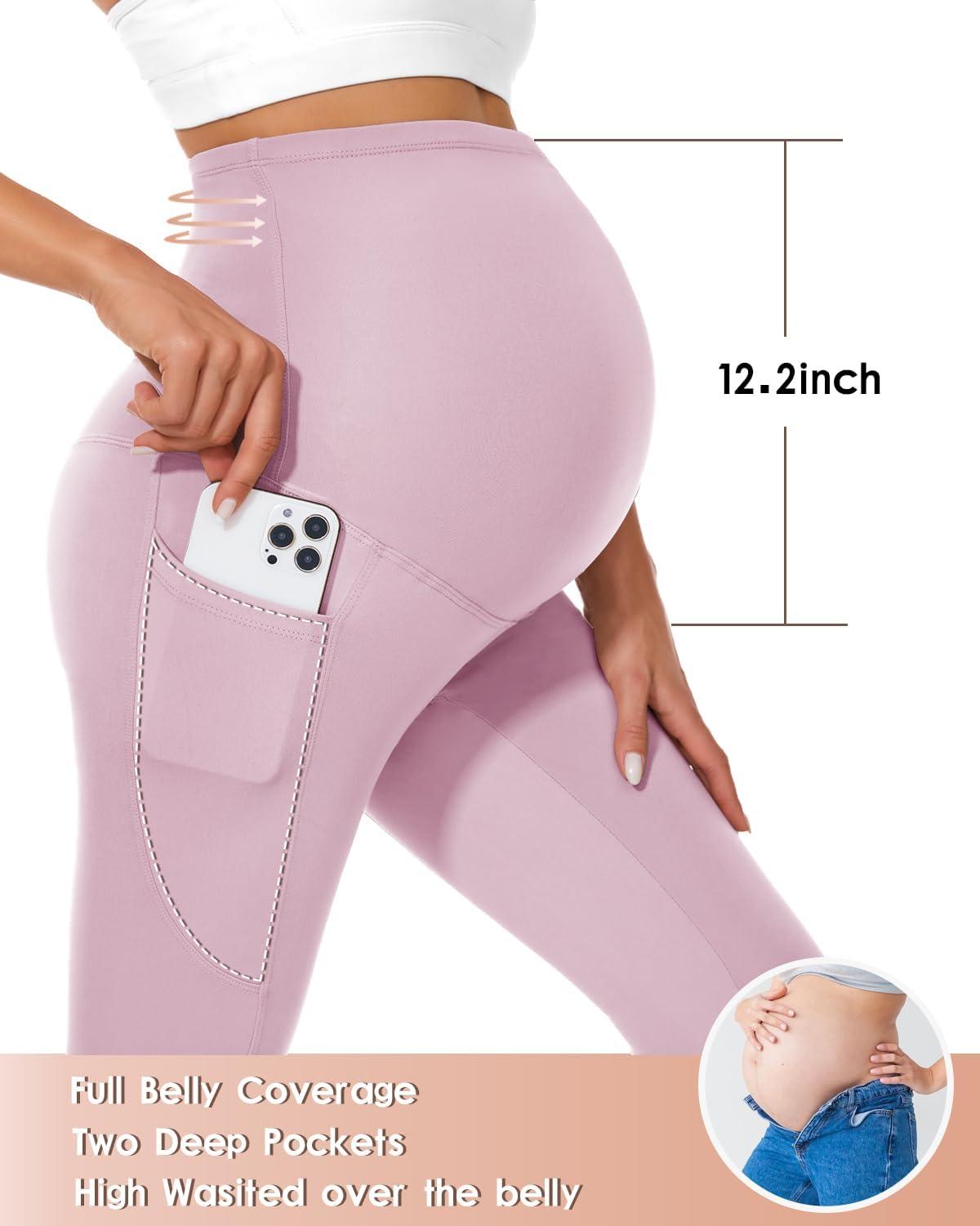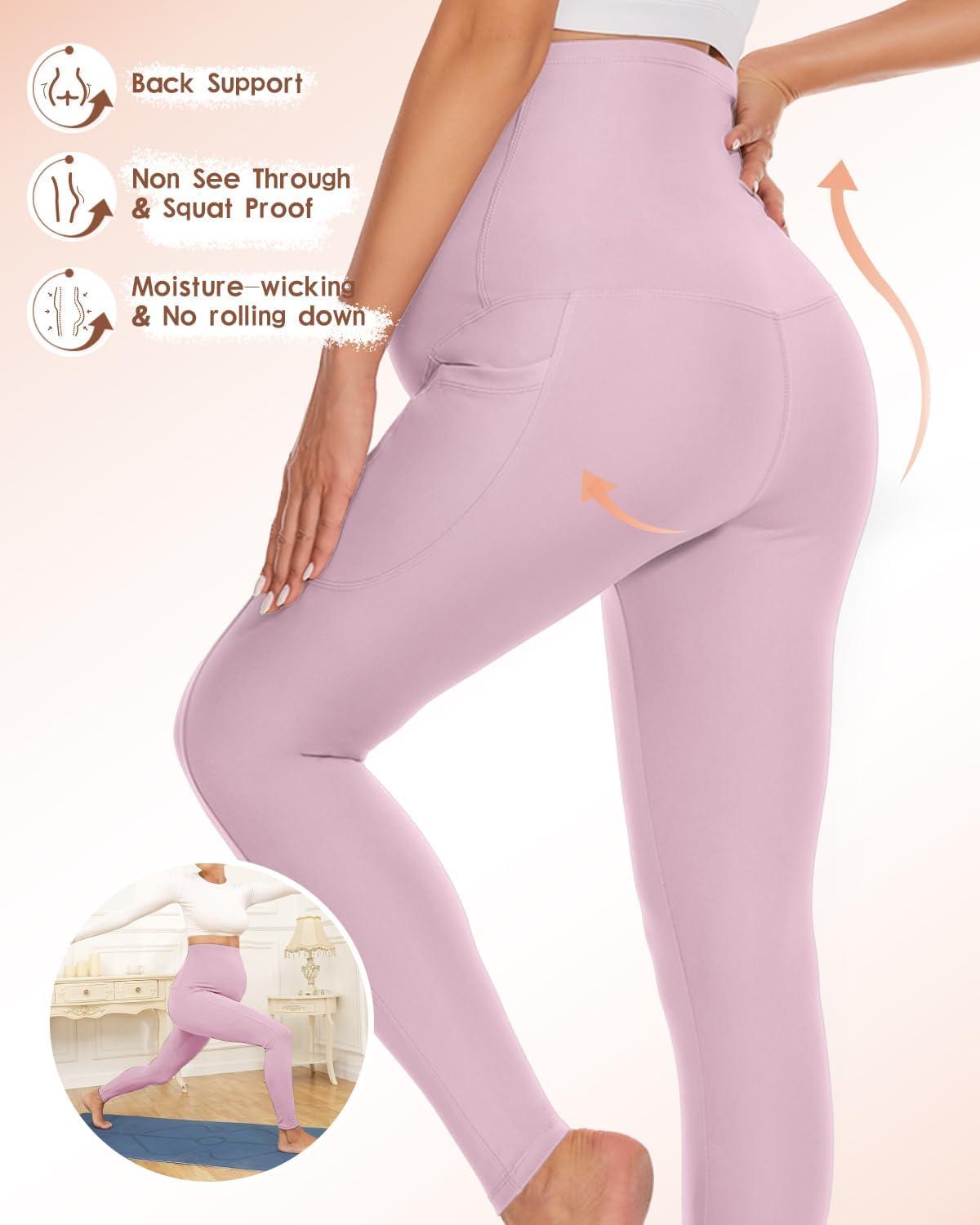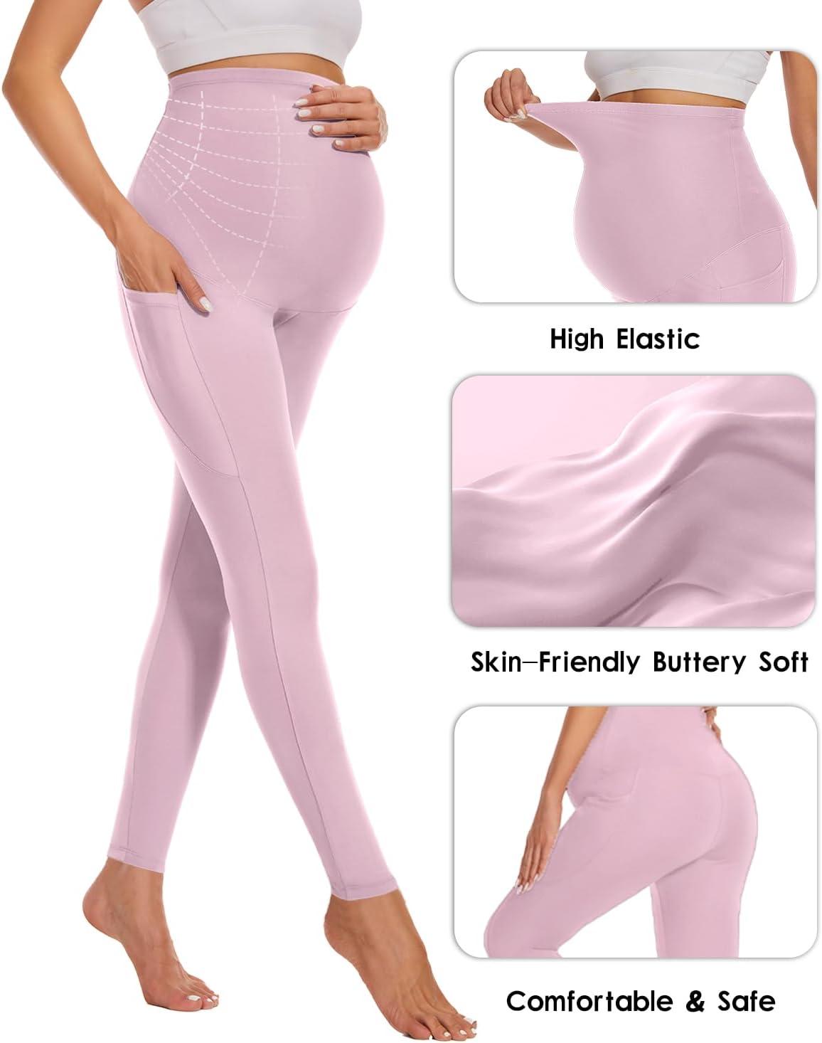 Hi Clasmix Buttery Soft Maternity Leggings Over The Belly with Pockets-Non-See-Through Workout Pregnancy Yoga Pants(3-1 Pack Pink)