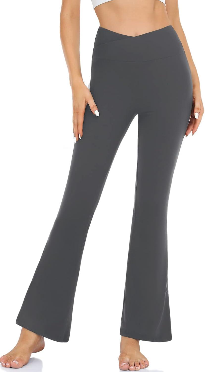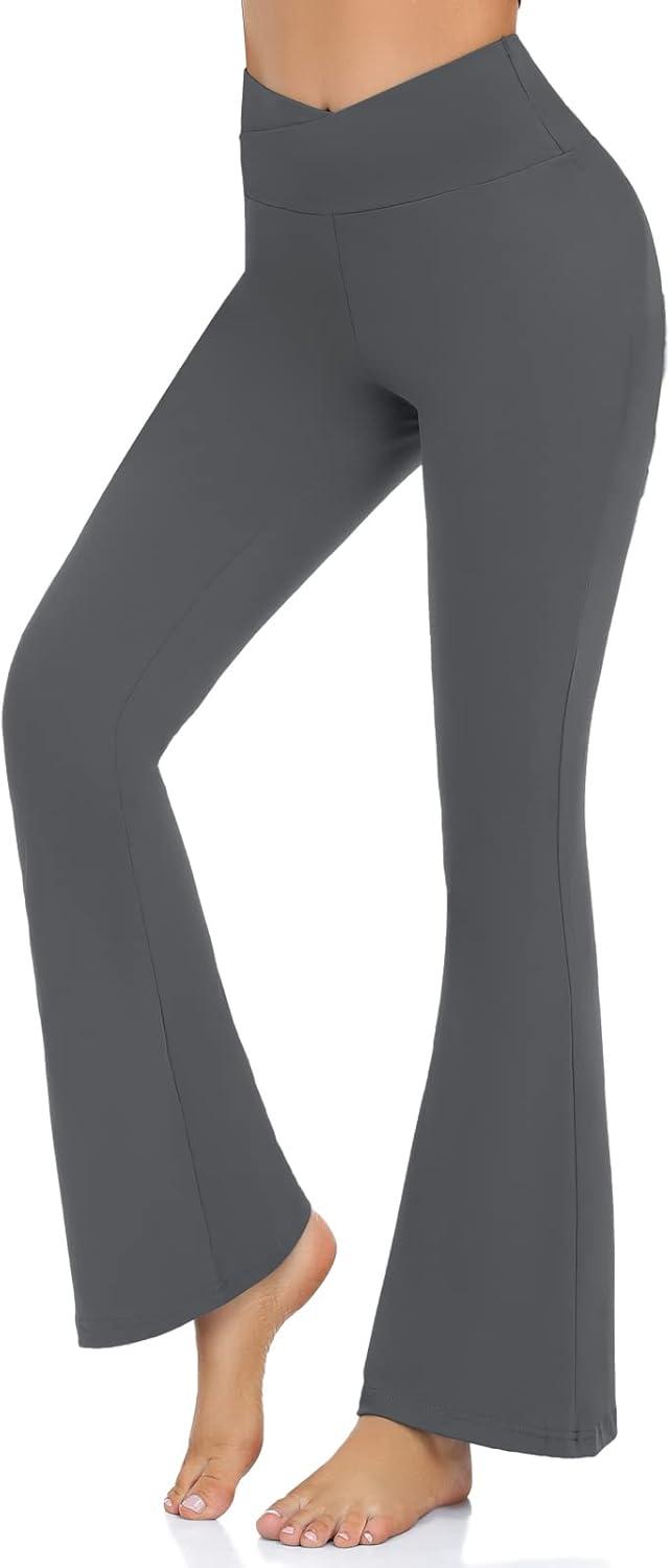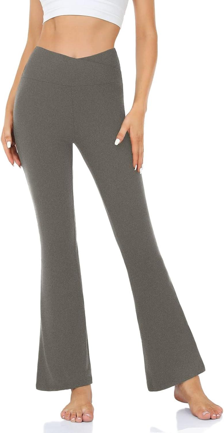 Hi Clasmix Flare Leggings for Women – High Waist Crossover Yoga Pants Tummy Control Bootcut Bell Bottom Jazz Lounge Leggings(6-grey)