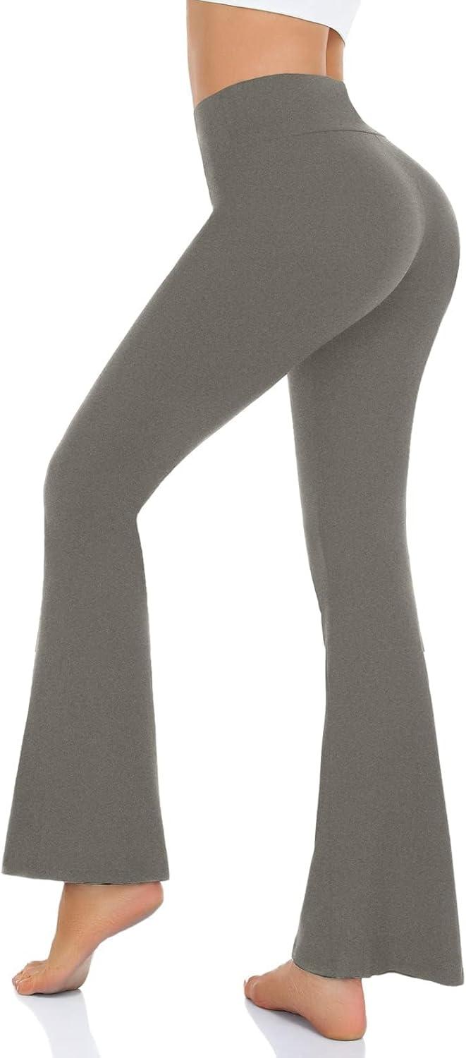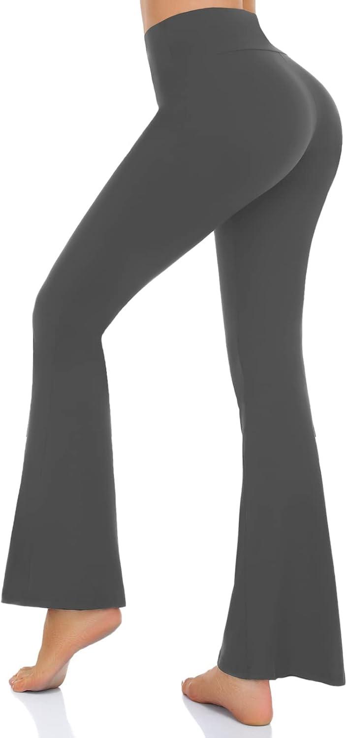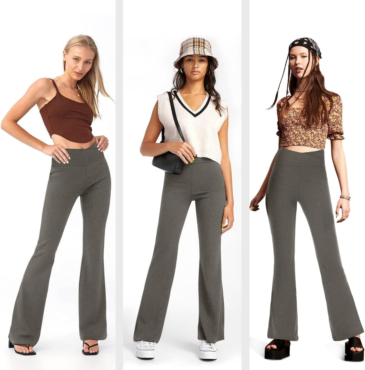 Hi Clasmix Flare Leggings for Women – High Waist Crossover Yoga Pants Tummy Control Bootcut Bell Bottom Jazz Lounge Leggings(6-grey)