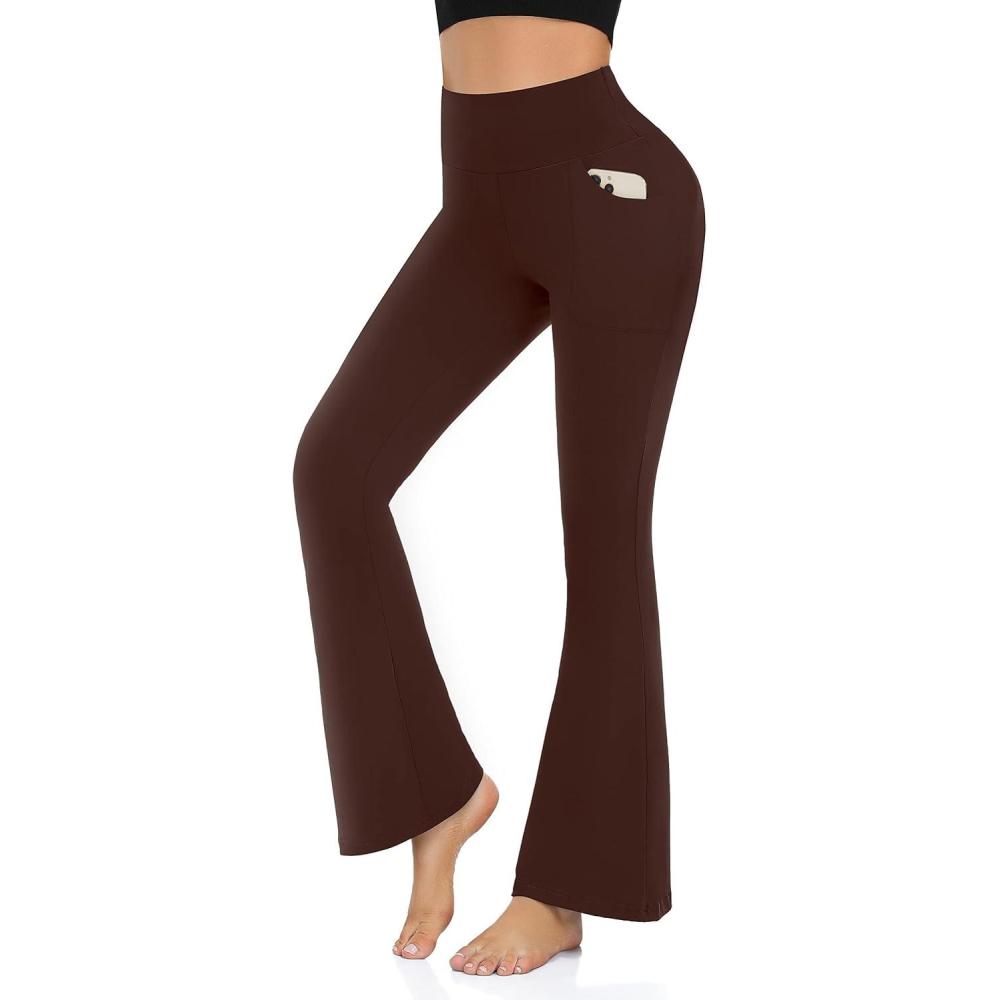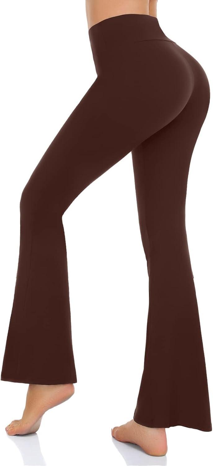 Hi Clasmix Flare Leggings for Women – High Waist Crossover Yoga Pants Tummy Control Bootcut Bell Bottom Jazz Lounge Leggings(Brown)