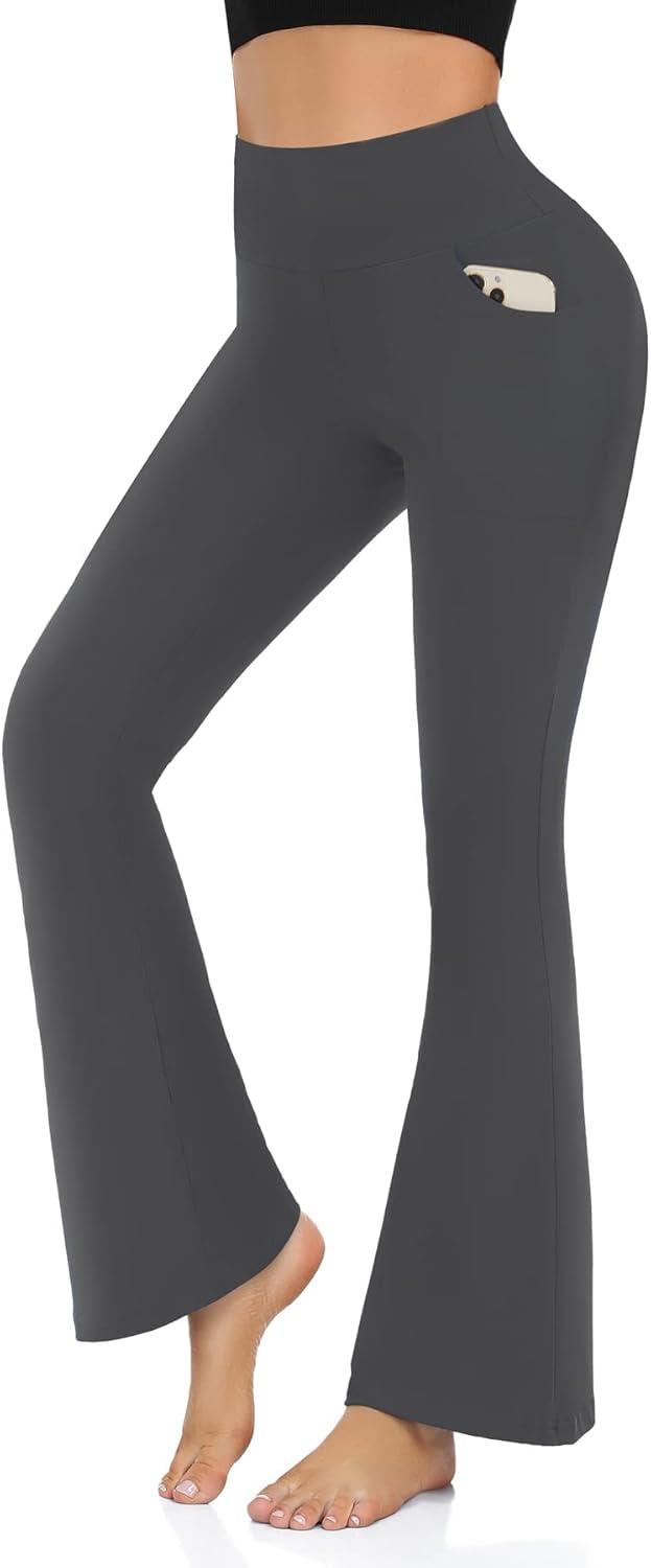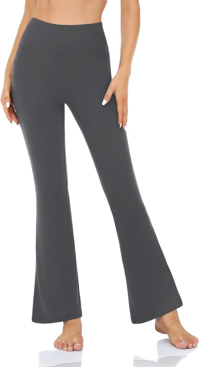 Hi Clasmix Flare Leggings for Women – High Waist Crossover Yoga Pants Tummy Control Bootcut Bell Bottom Jazz Lounge Leggings(Grey)