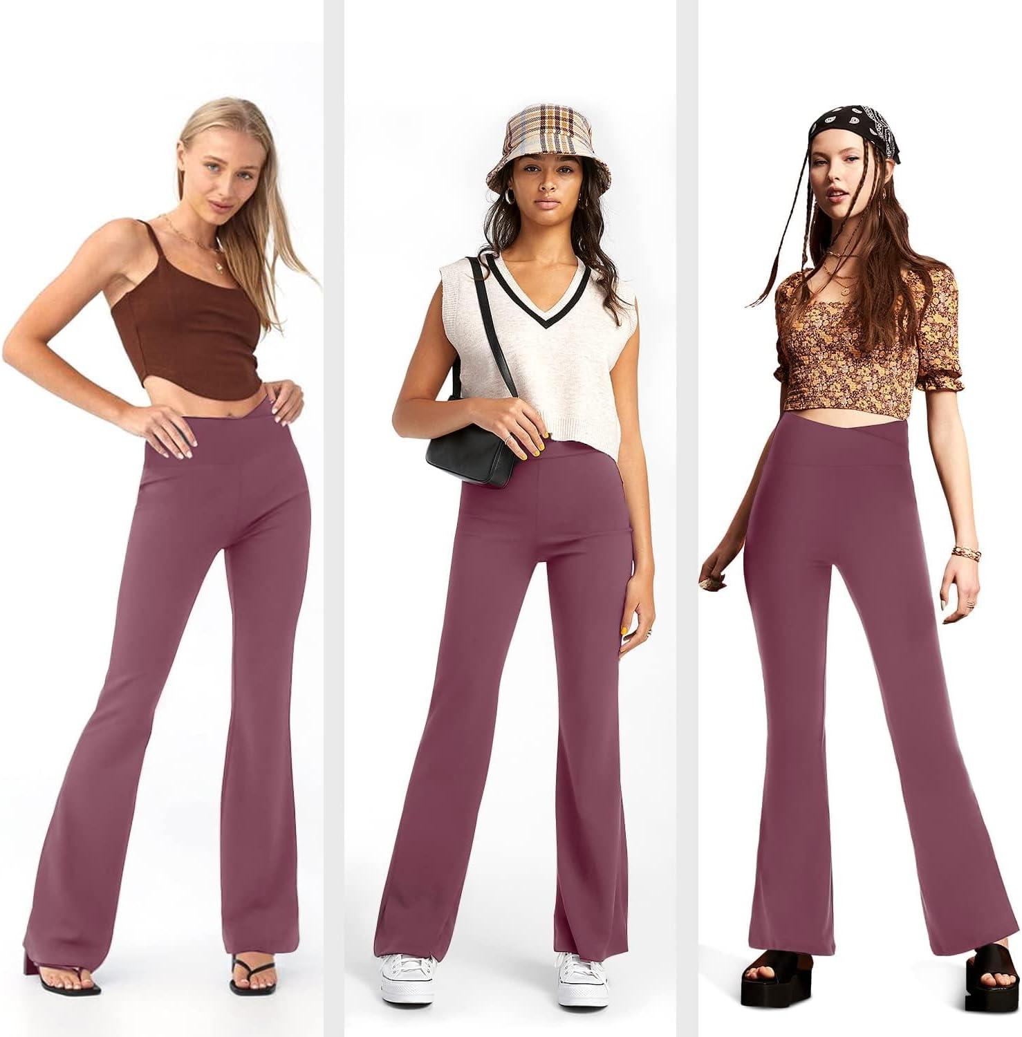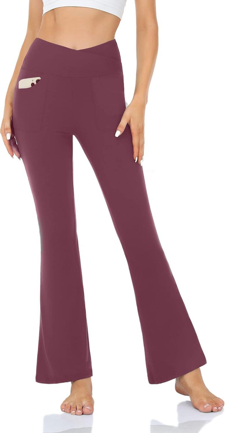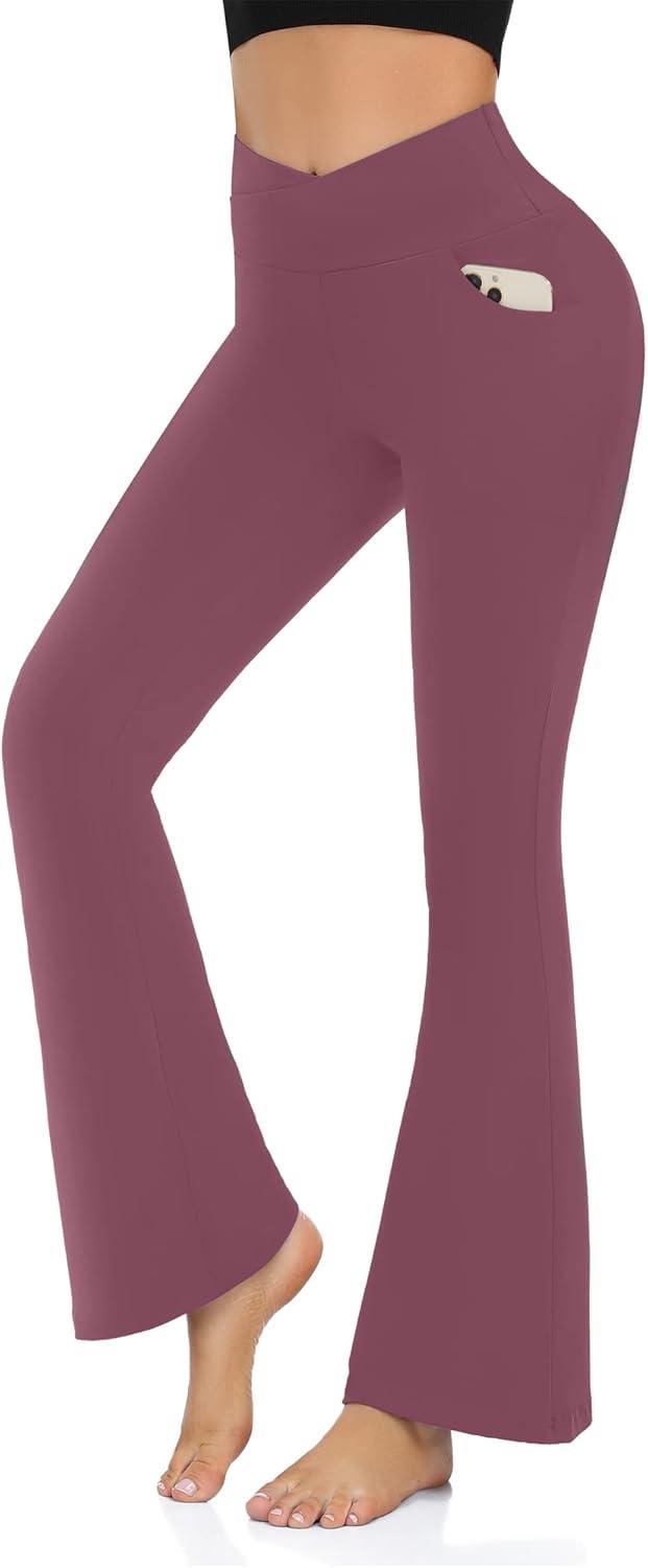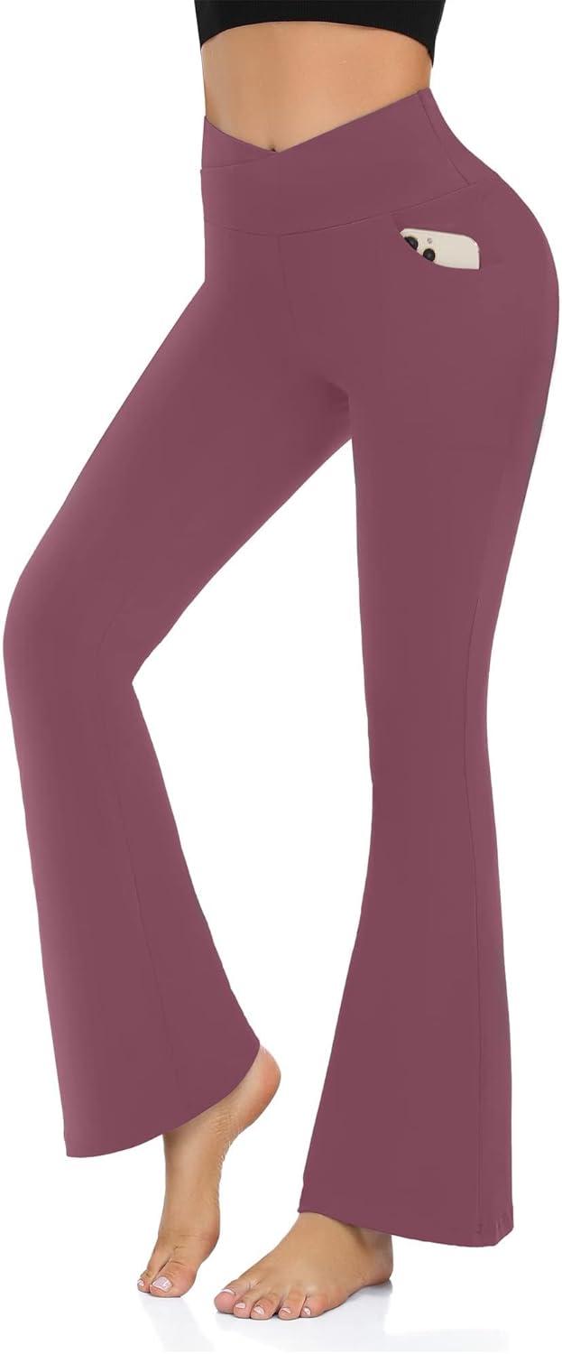 Hi Clasmix Flare Leggings for Women – High Waist Crossover Yoga Pants Tummy Control Bootcut Bell Bottom Jazz Lounge Leggings(Pockets-dusty Rose)