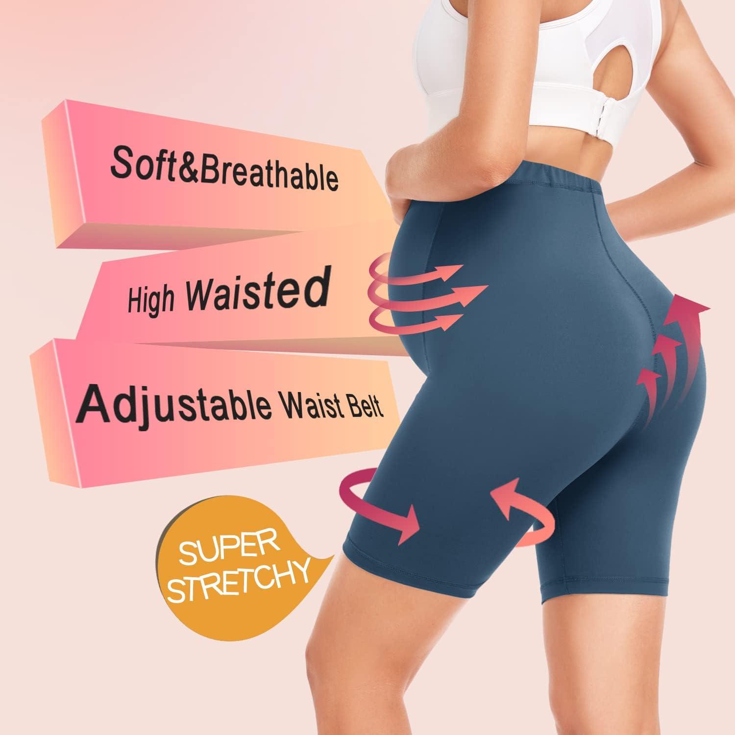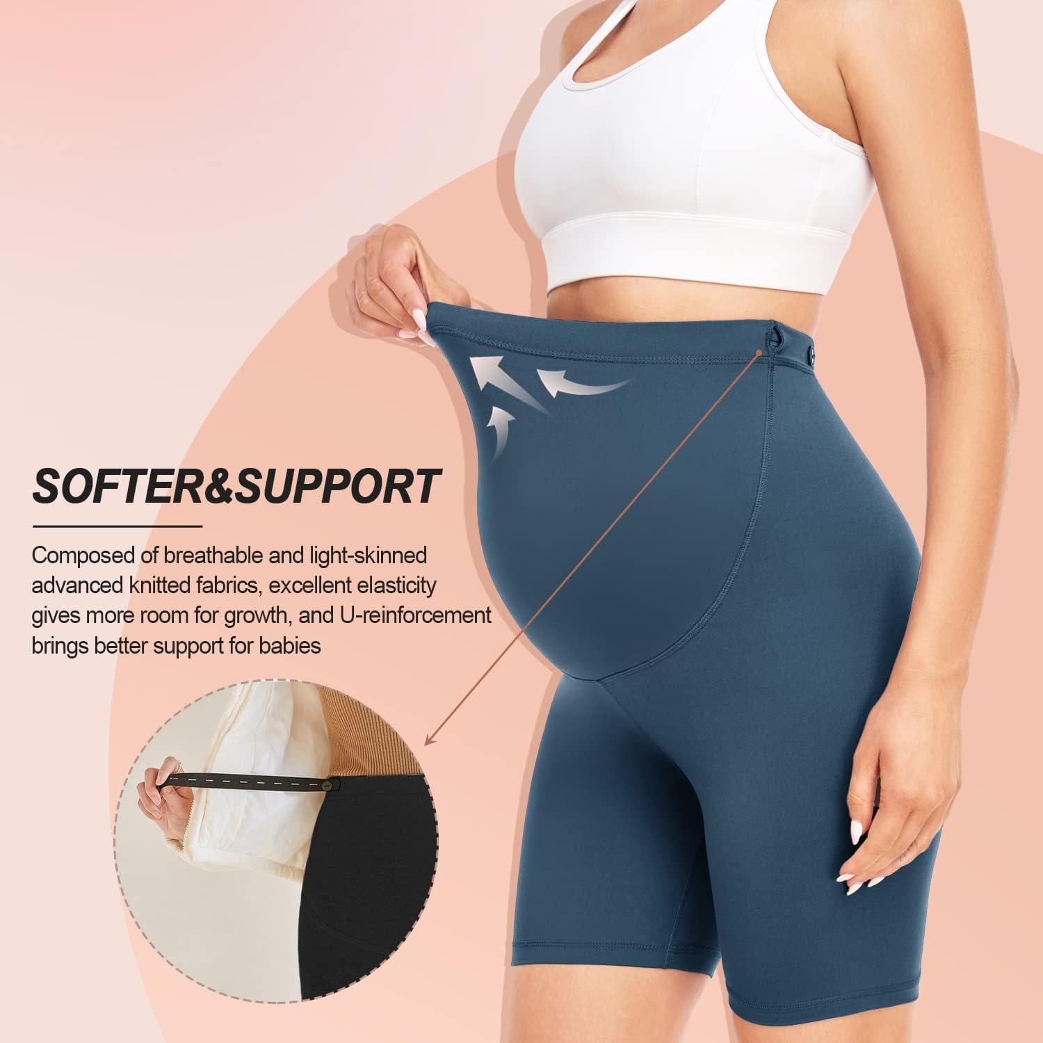 🥰HIGH WAIST: The most worth mentioning is the waist of these biker shorts. The 9-inch wide waistband gives you good belly coverage, supports and protects the baby very well .you don't have to worry about rolling down anymore, the waist is made with folds and elastics on both sides, which can better wrap your abdomen and fit the curve of your body. The fabric is soft and fits without curling, allowing you to put on and take off in a second, giving you the most convenient way to dress.