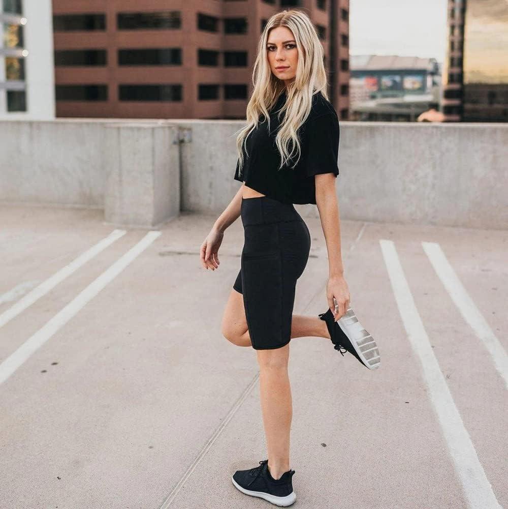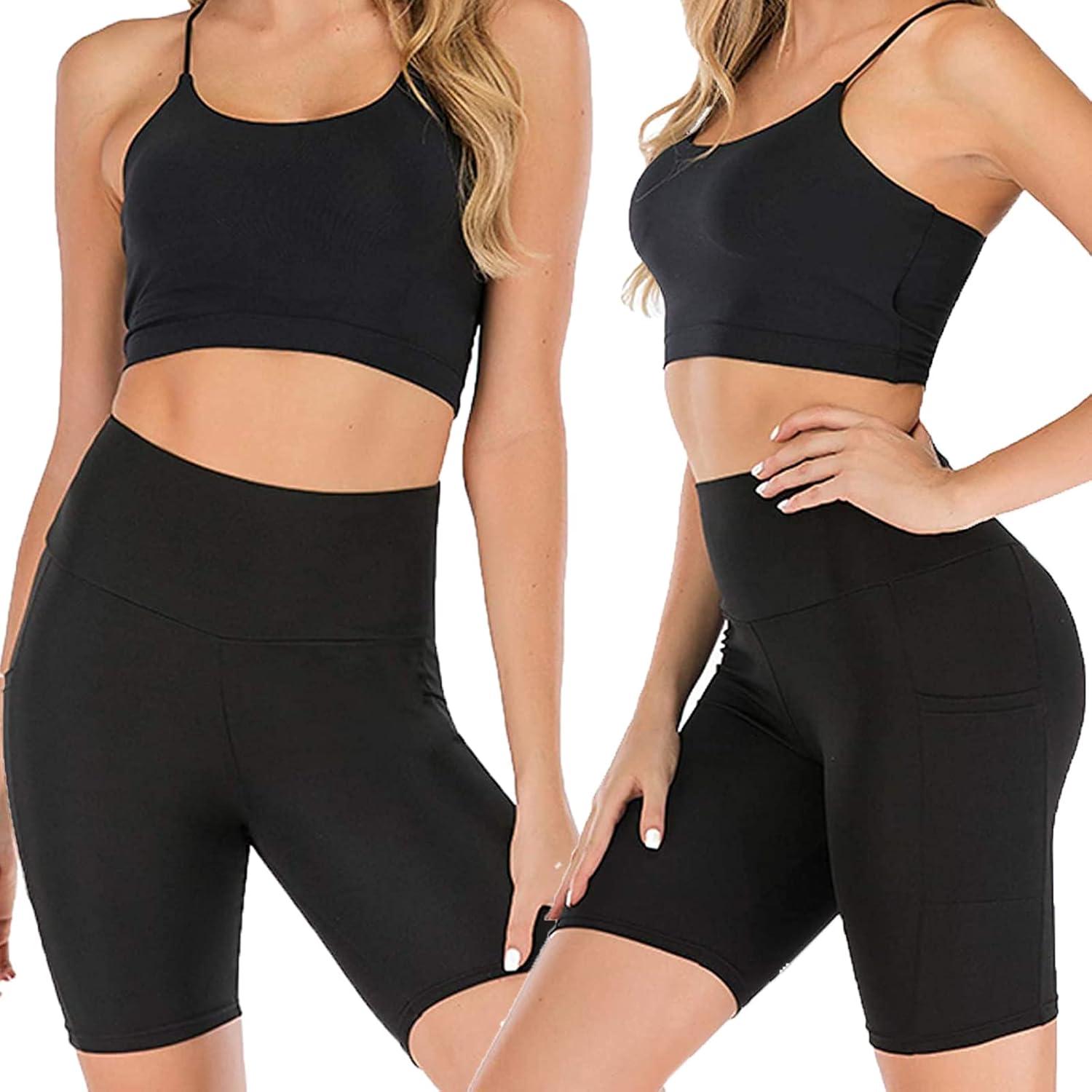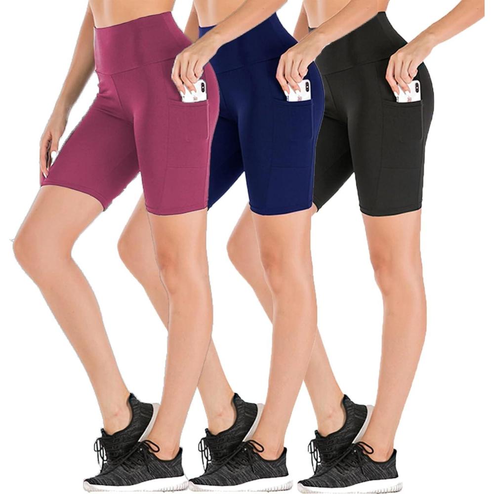 High Waisted Biker Shorts for Women-Workout Yoga Running Shorts Leggings with Pockets(1# Black,Navy,Pink 3 Pack, Small)