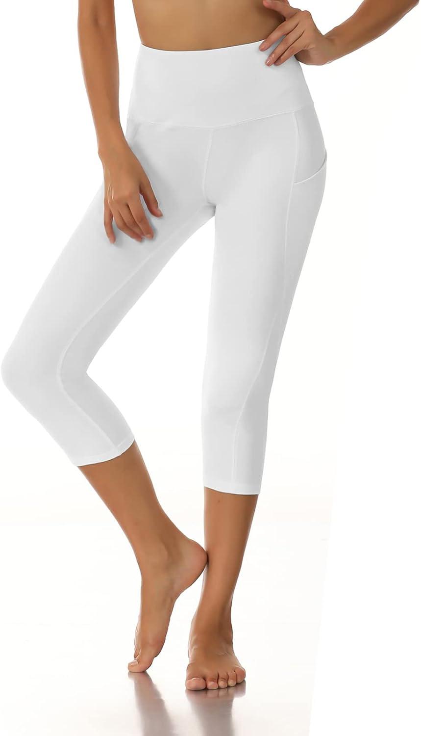 Yoga Pants with Pockets for Women – Leggings with Pockets High Waisted Tummy Control Non See-Through Workout Pants(Capri-white)